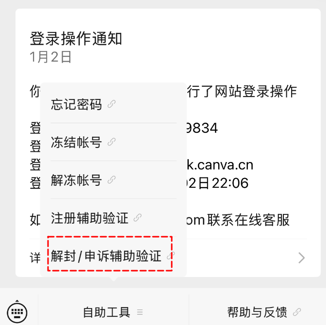3.操作完上一步之后,再点击解封/申述辅助验证,然后根据提示填写个人信息(比如身份证后4位,银行卡账号)验证成功后,你的账号即可解除限制。