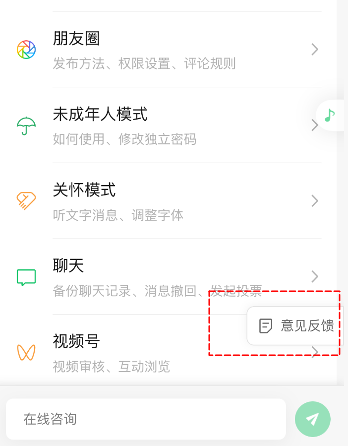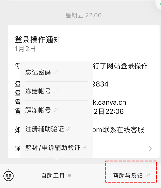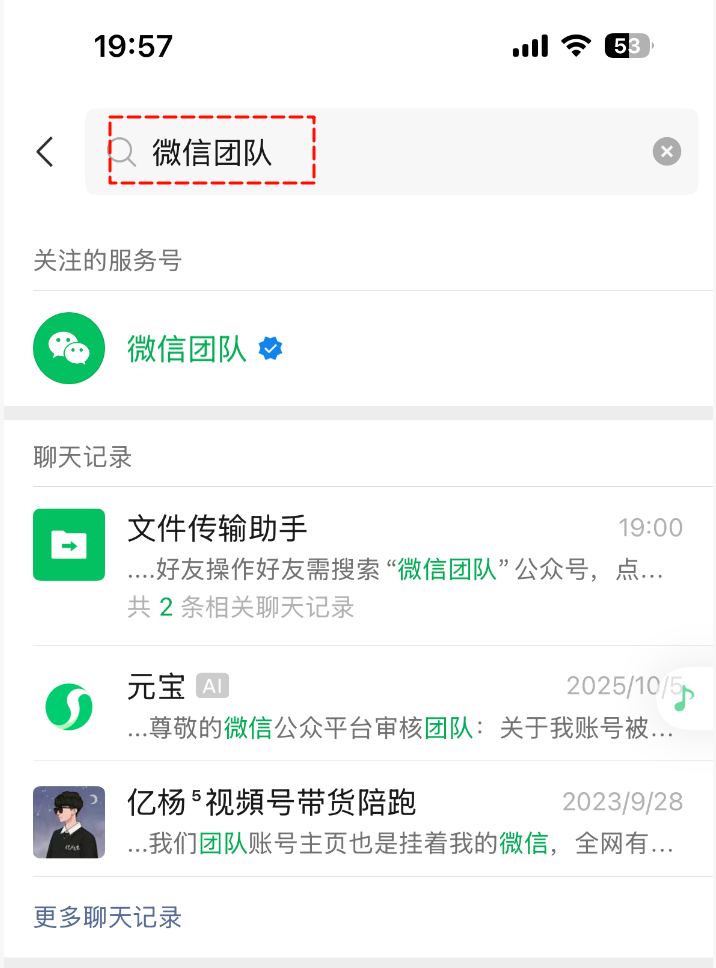 2.进入微信团队公众号之后点击右下角帮助与反馈